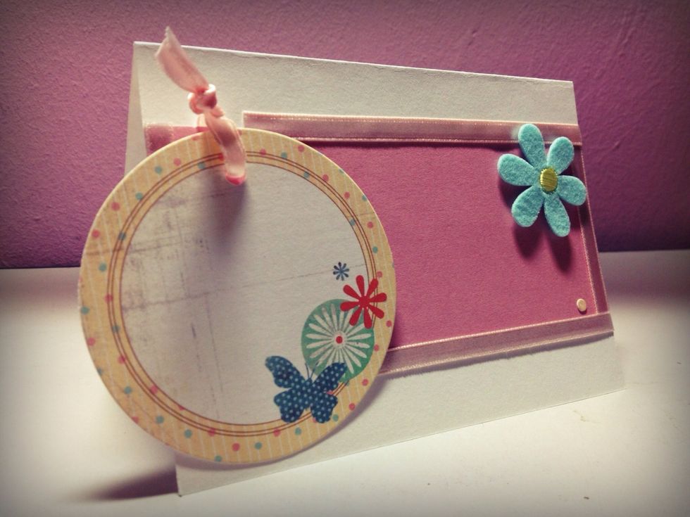 Feel free to write your own message on the tag, such as "Thanks" or "Happy Birthday". I added some decorative stickers to dress up the card.