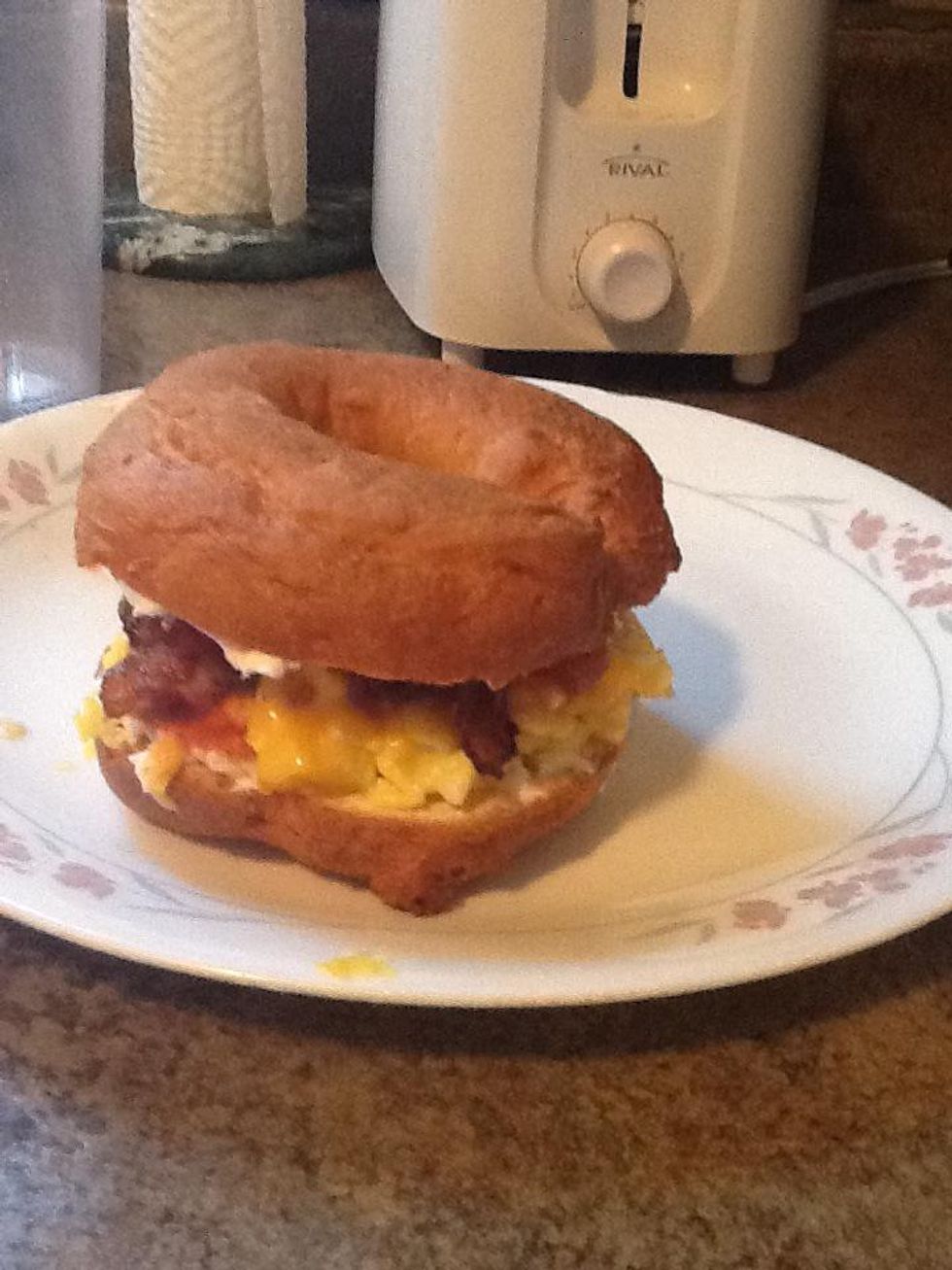 Start building your bagel! Eggs...