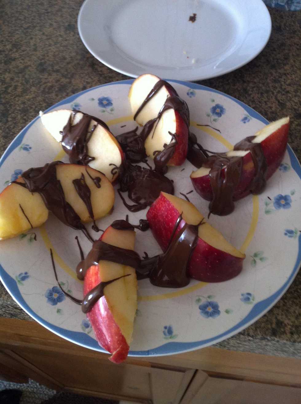 And start putting the chocolate and put it on the apples!