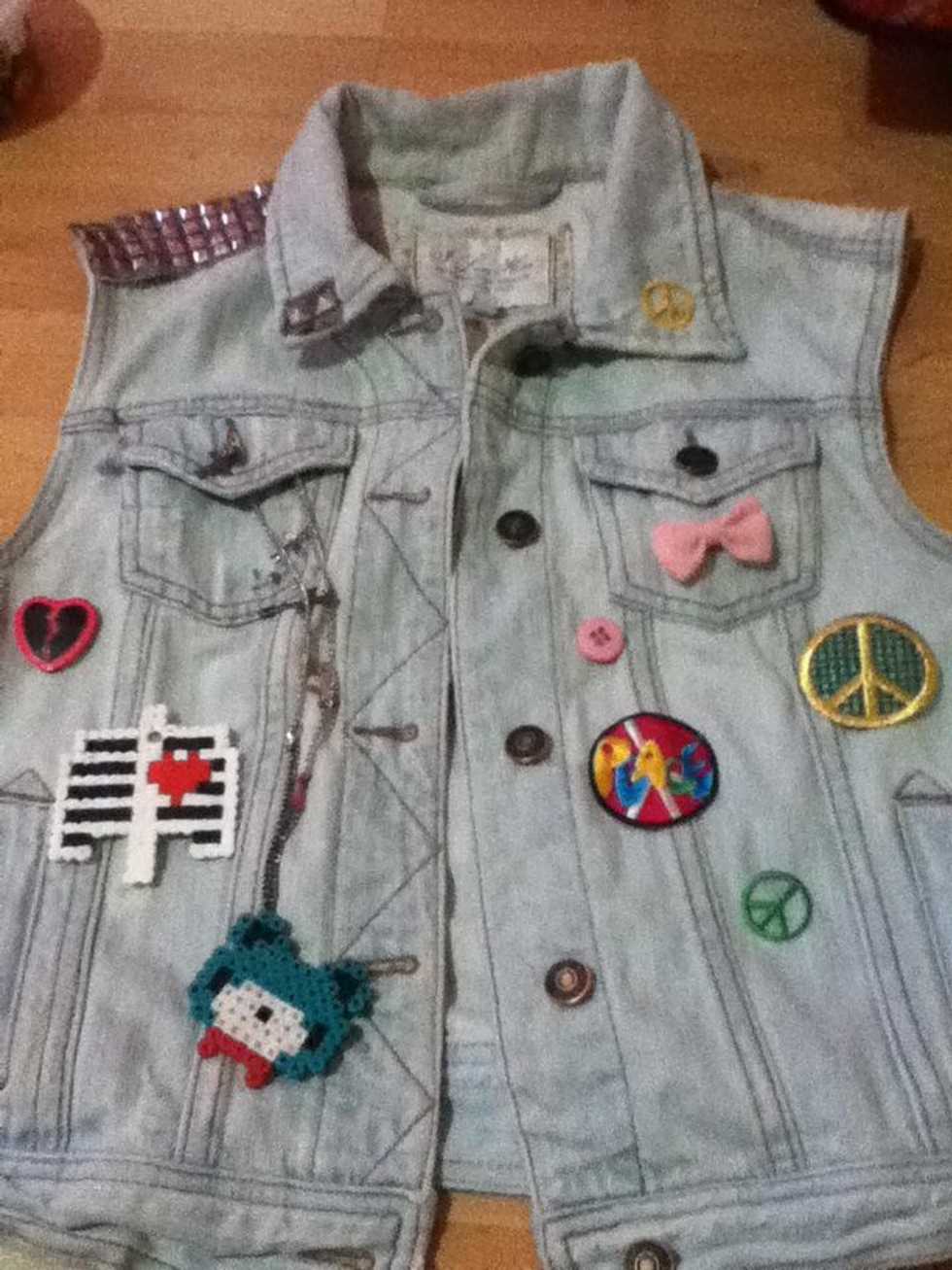 This is how my good girl side of my vest looks! You can rearrange them any way you want. Just make sure there is space in between the decorations.