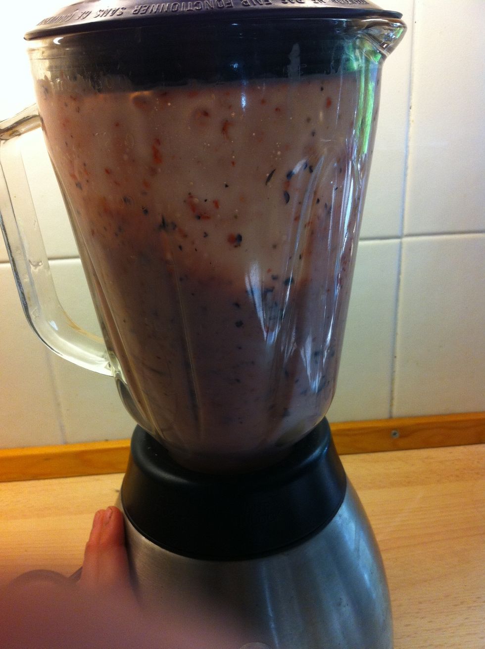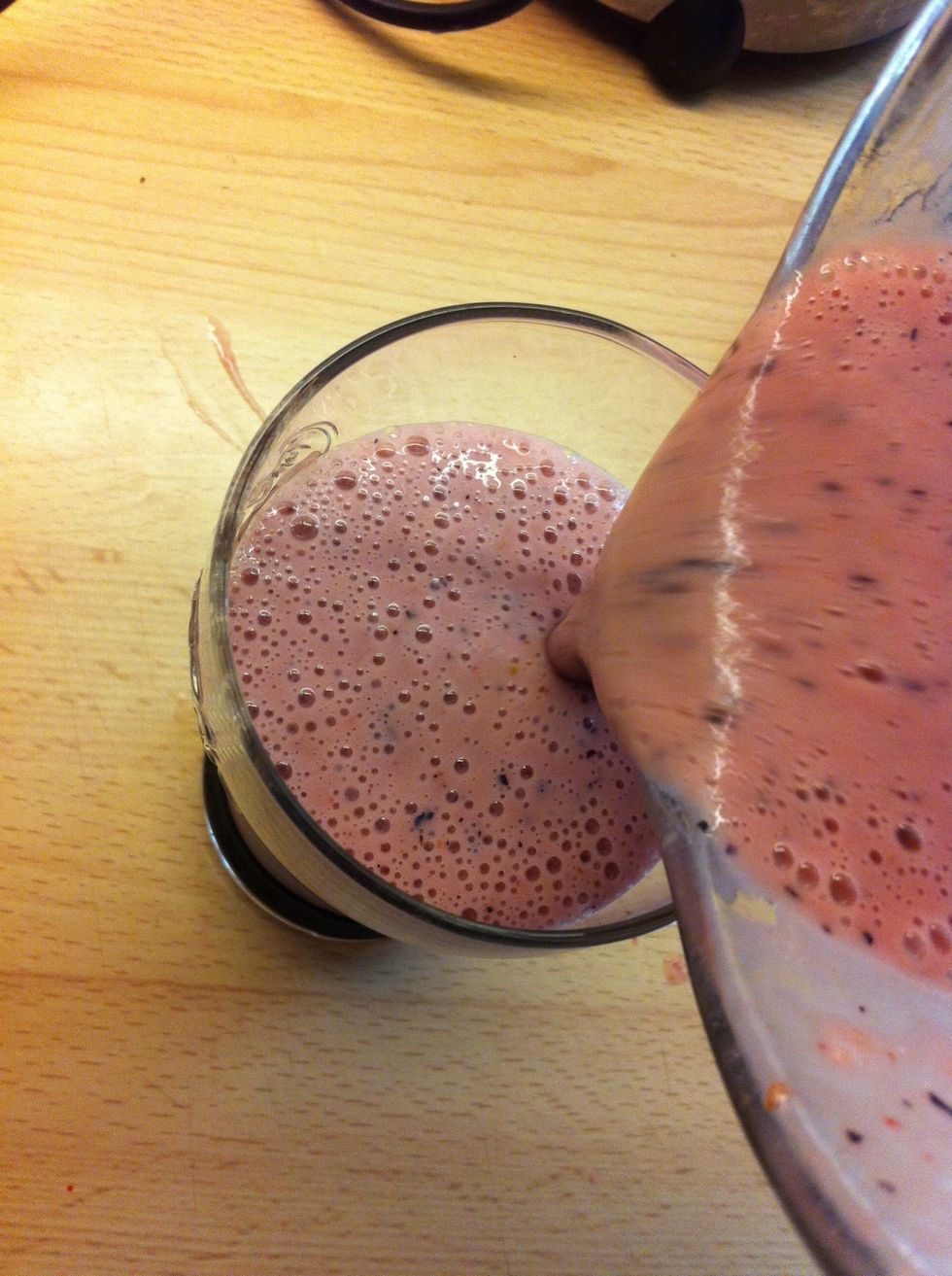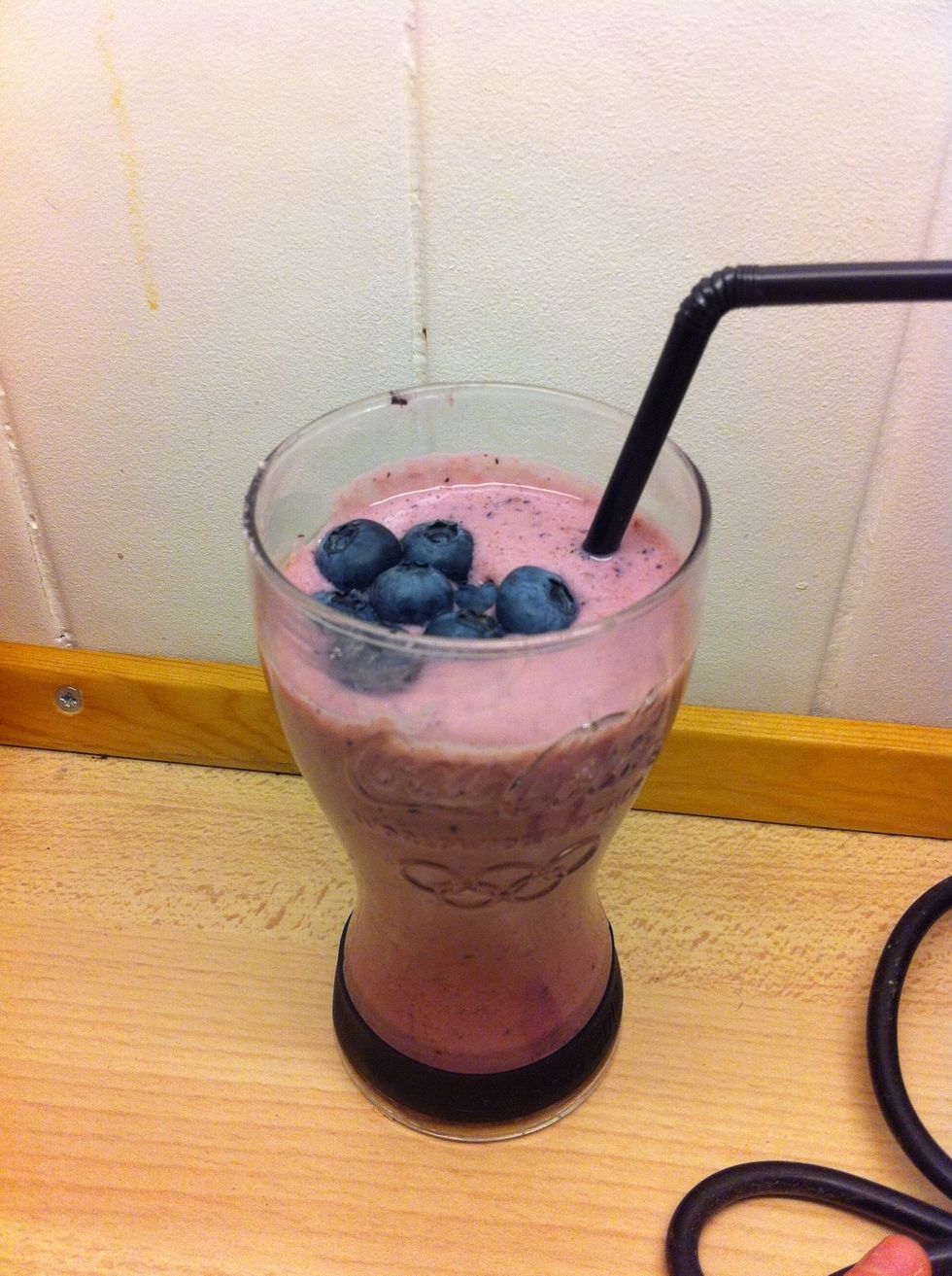 You need: blender, milk, yoogurt, Honey, lemonjuice, strawberry, fresh orange juice, blueberry. YOU CAN PUT 2 ICE IN