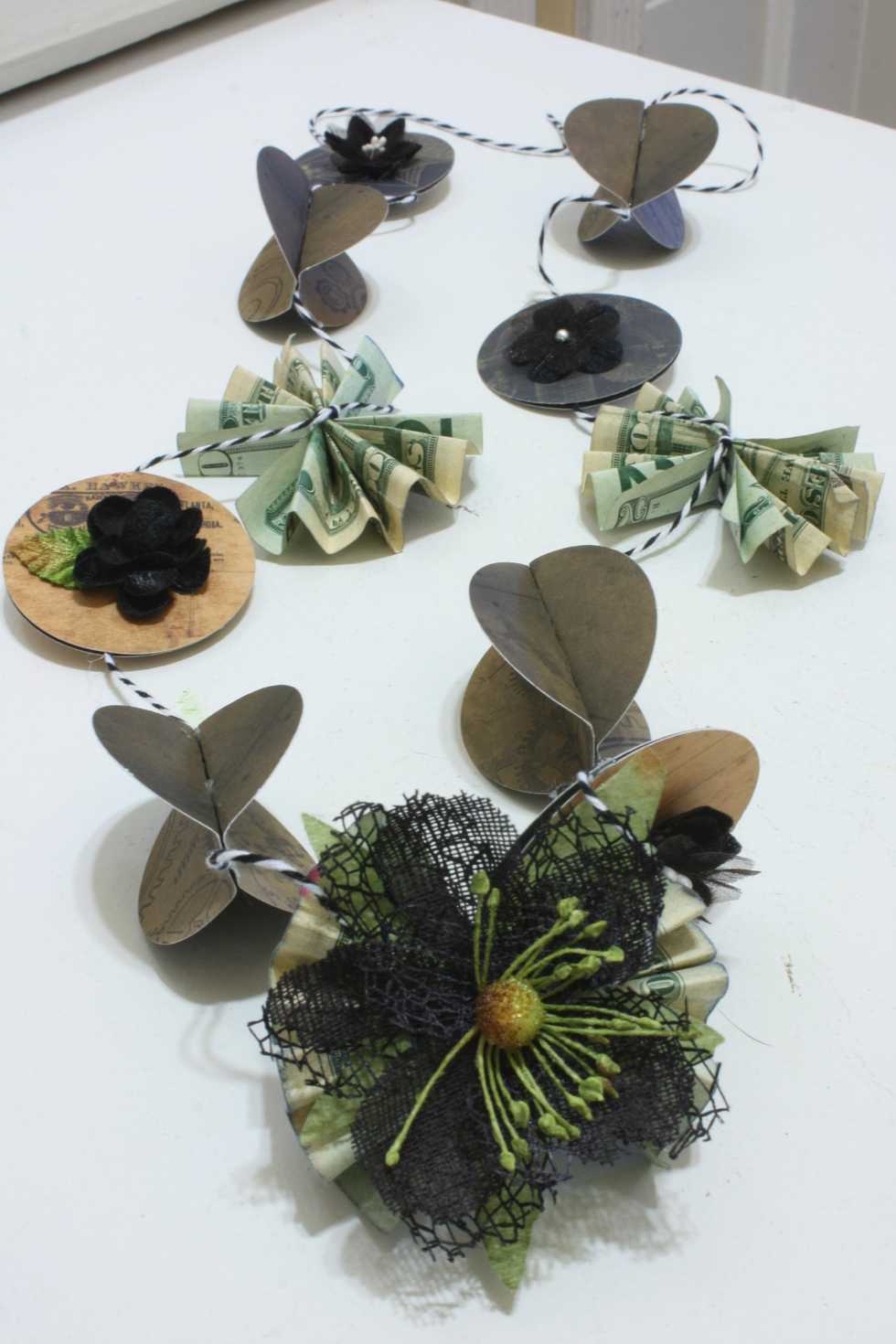 I used a Big flower for the focal point. I just got a dot of hot glue and I put it right on top of the knot of the cash