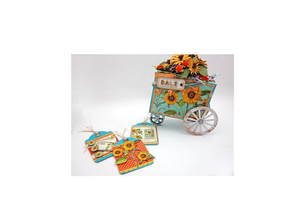 Finish decorating your cart as you wish. I've used some of the coordinating chipboard, ribbon and more of G45 metal brads but be sure to make it your own.
