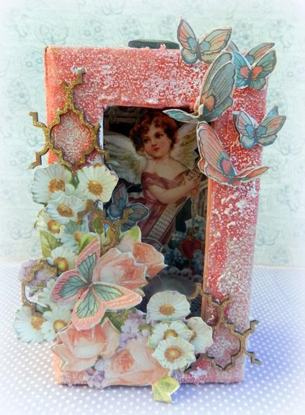 Now we will prepare the outside of the matchbook box covering it with G45 papers. After apply pink ink pad on the borders of the box.