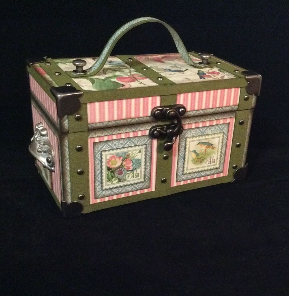 Attach metal embellishments and hinges to back of trunk as pictured.