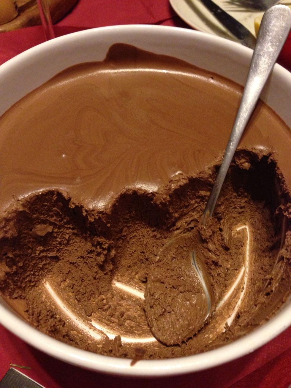 VoilĂ , you can now pour it into a bowl and let it solidify in the fridge. Have fun licking chocolate off all the utensils you used :)