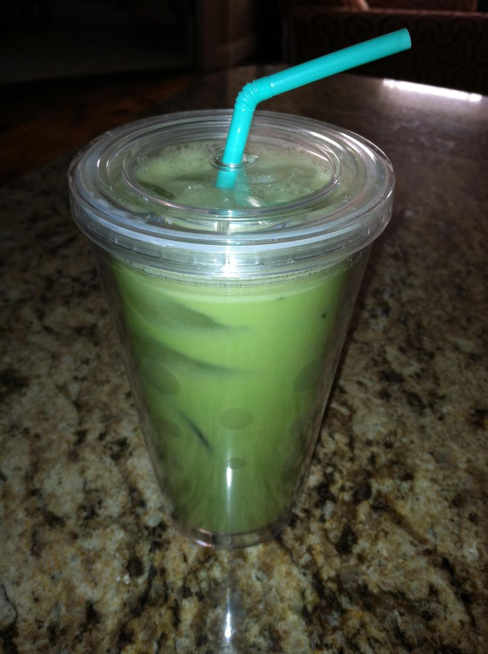 Add 1 Tbsp of matcha to a shaker filled with ice. No shaker? A plastic reusable food container with a lid will work....you could even just give it a really strong stir with a straw in a glass.