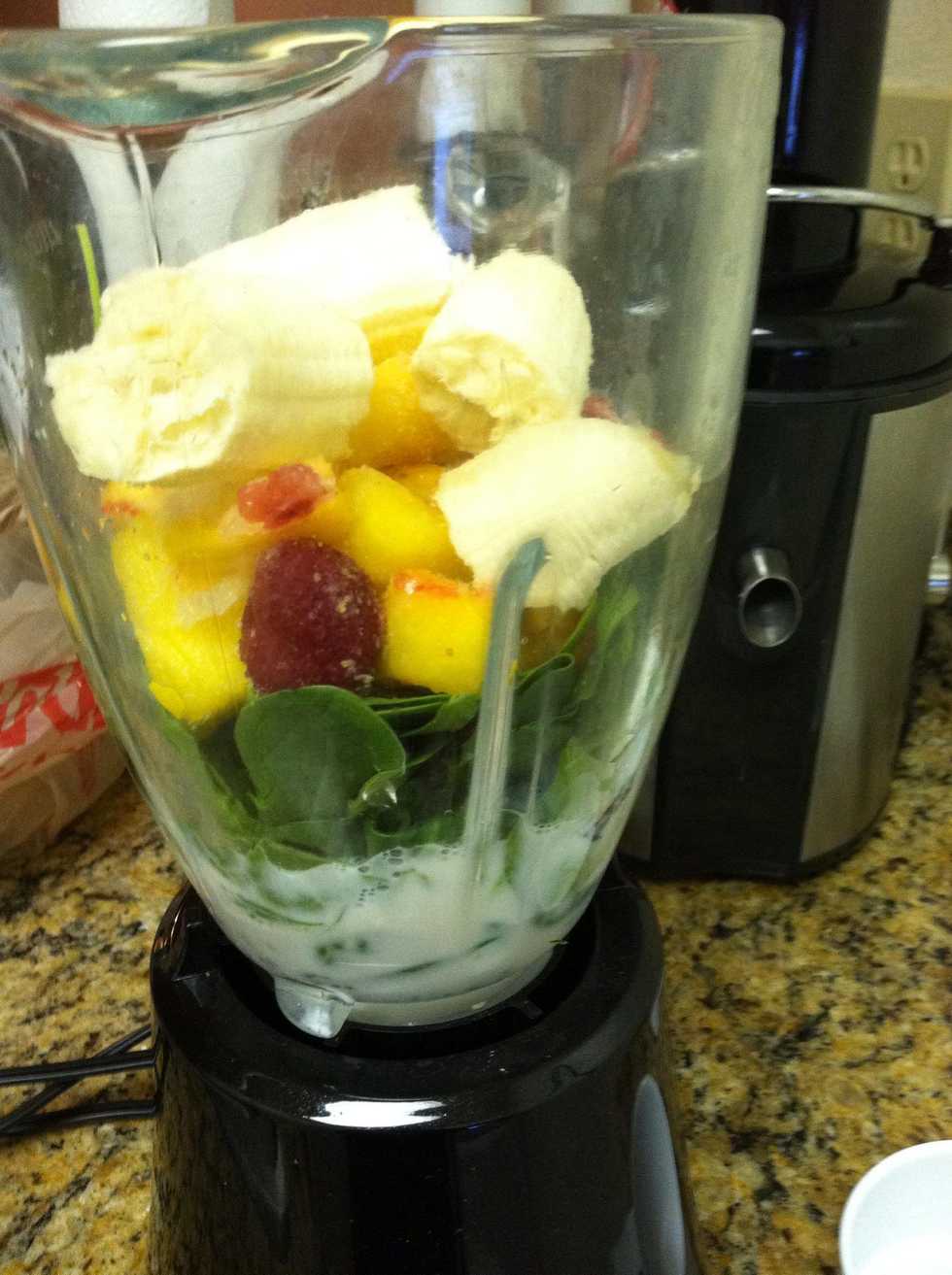 Add spinach with rest of ingredients on top and blend