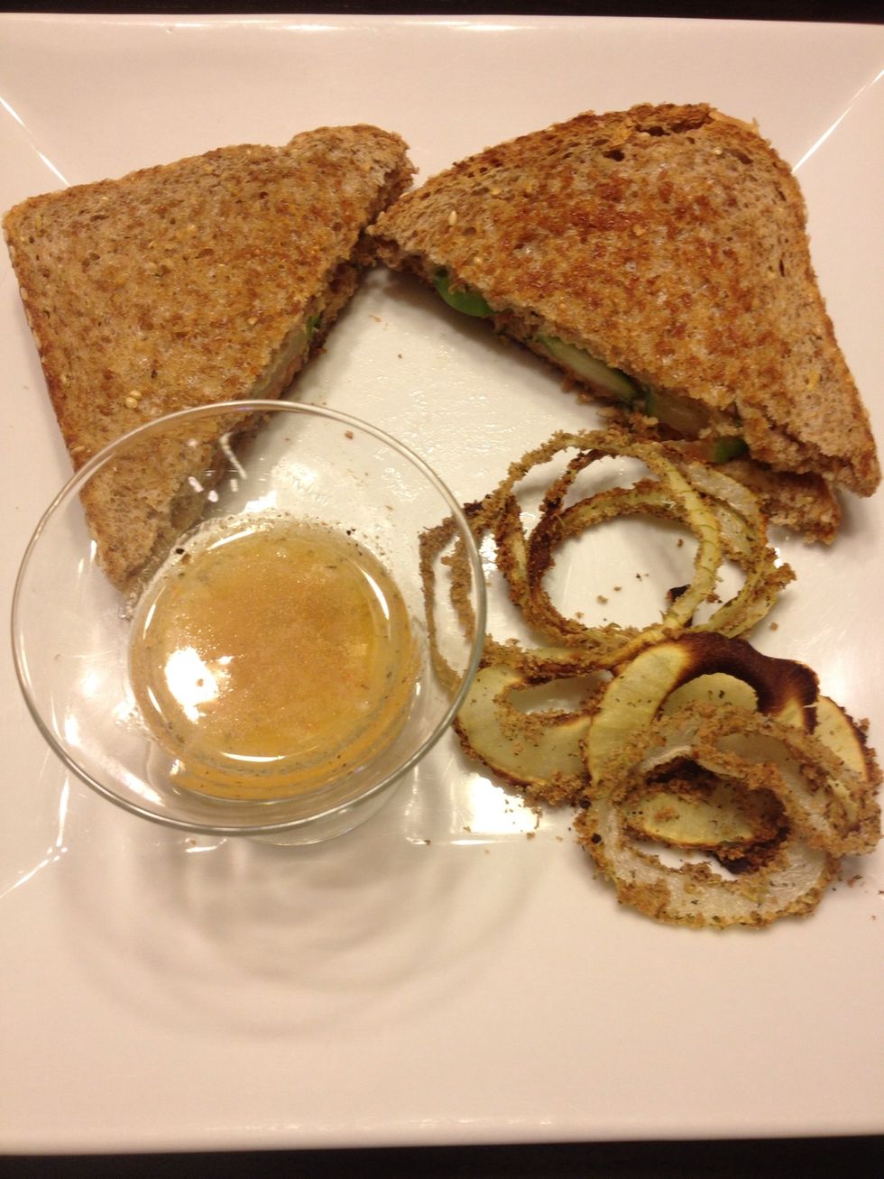 Serve with onion rings and Italian dressing