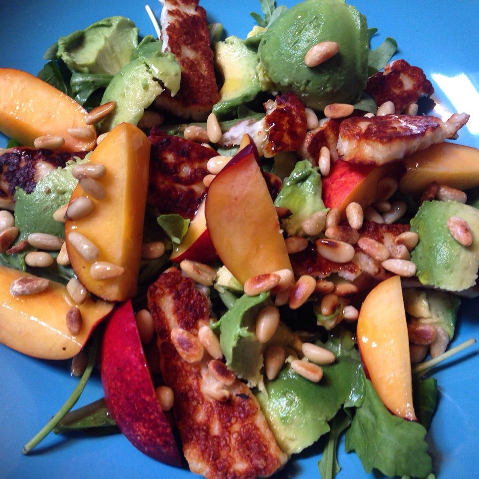 Finish with the roasted pine nuts. Drizzle some olive oil on top. You're in for a treat!