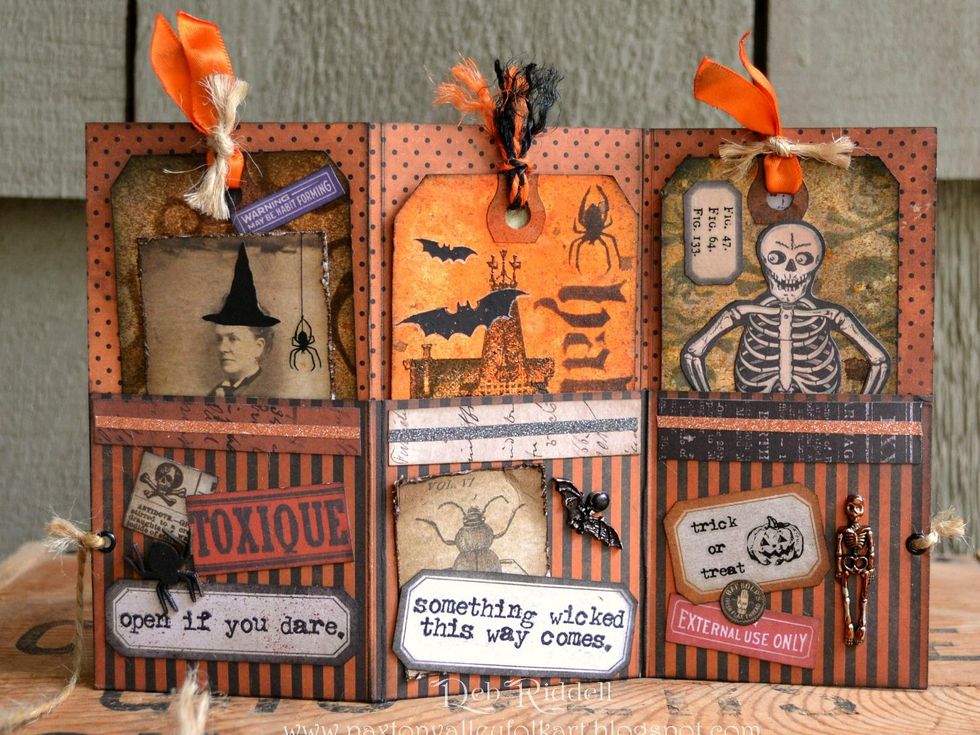 And last but not least, insert your tags into the pockets, fold up your Halloween accordion tag folder and secure closed with some jute twine tied through the eyelets. Happy Halloween! Deb xo
