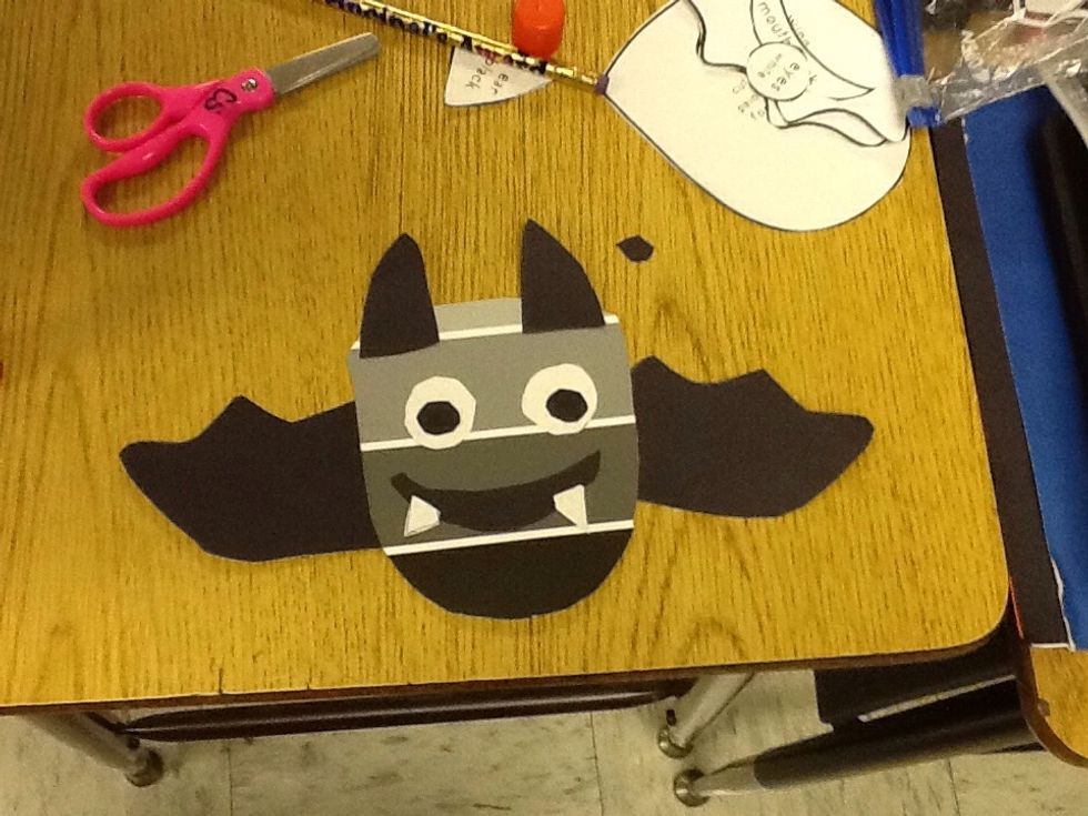 Then you glue the pupils into the middle of the bats eyes.