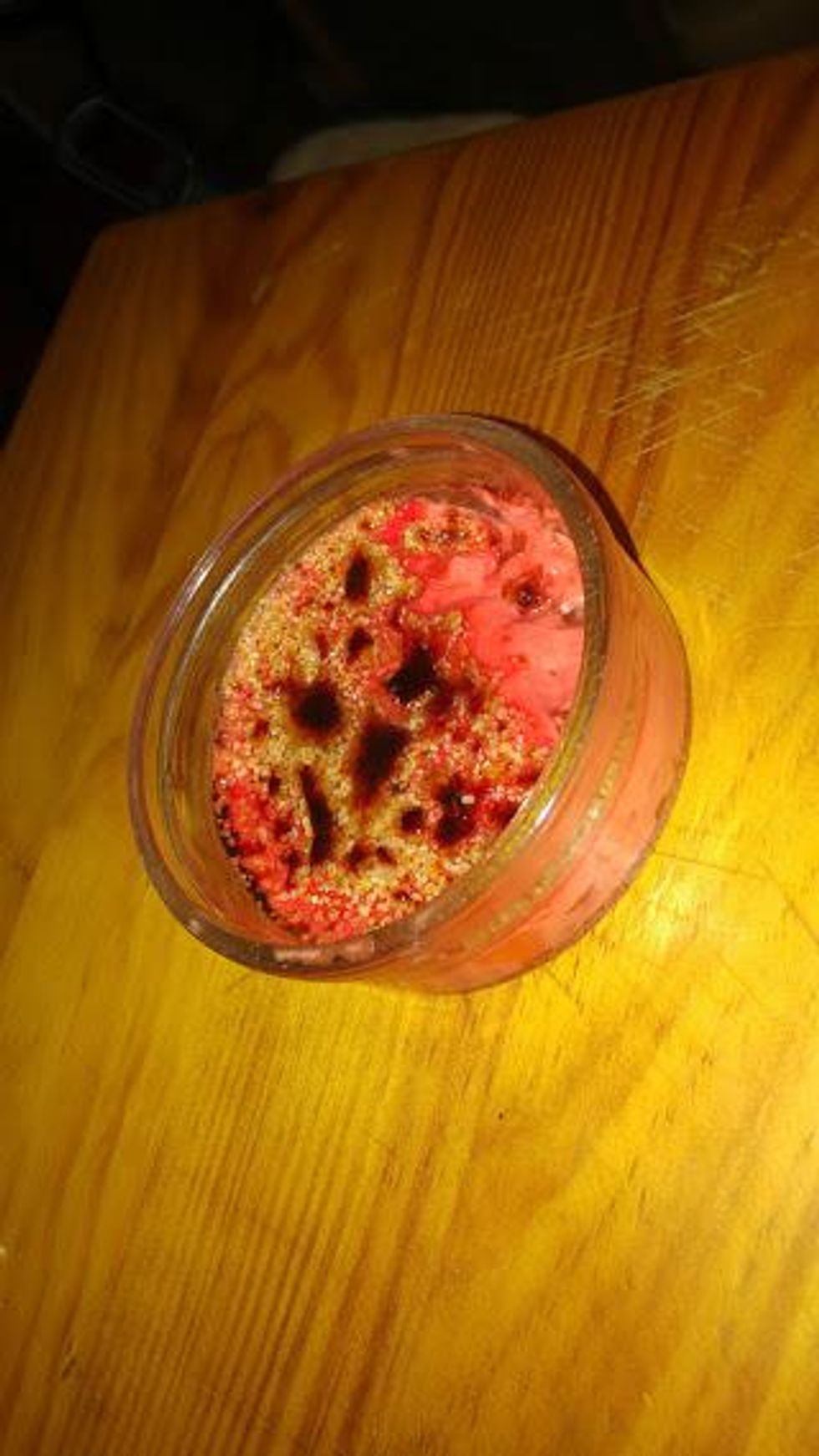 before serving, spinkle brown sugar on the cream and burn it with a cooking torch