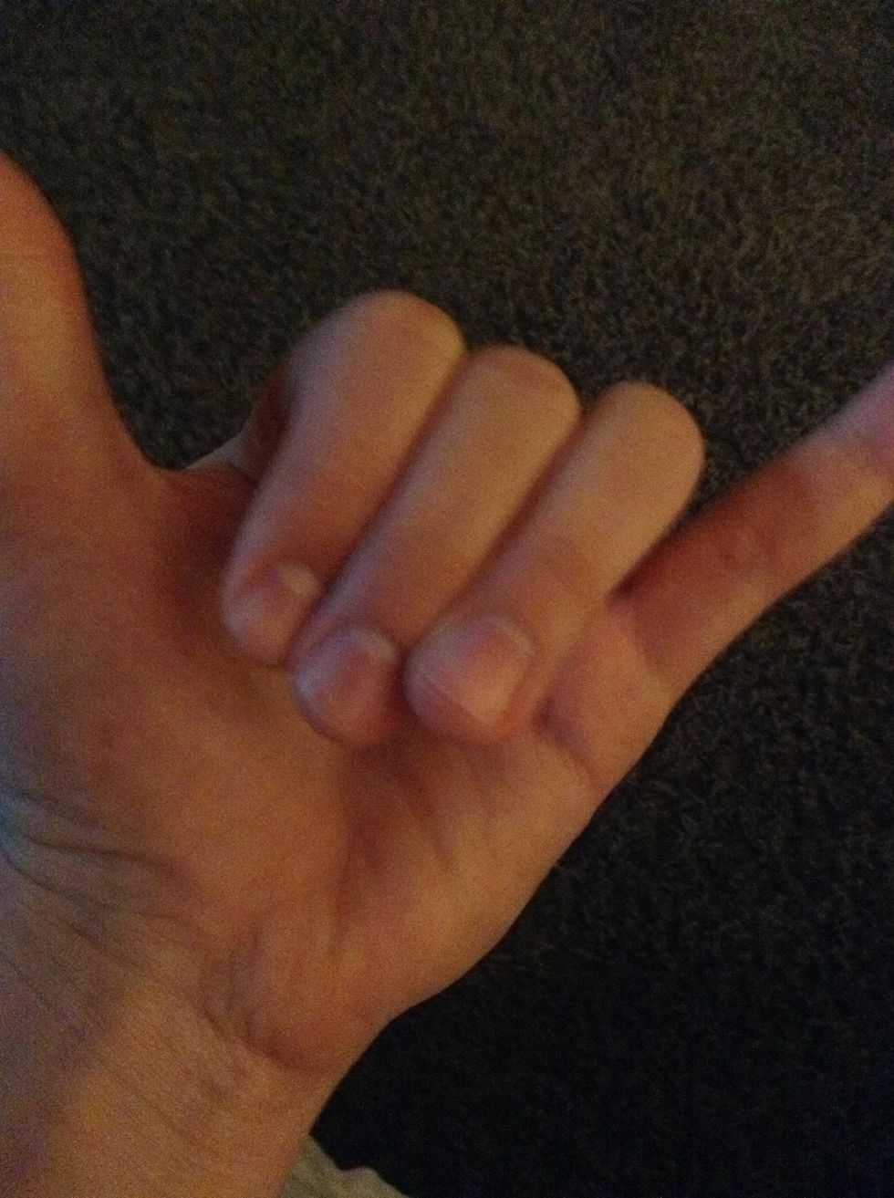 First, start will your hand open, like thisThen make a fistAfter, stick your thumb outLastly, poke your pinkie out like thatAnd there you have it! Now you can go show it to your friends, and tell them to "hang loose", or "chill out"