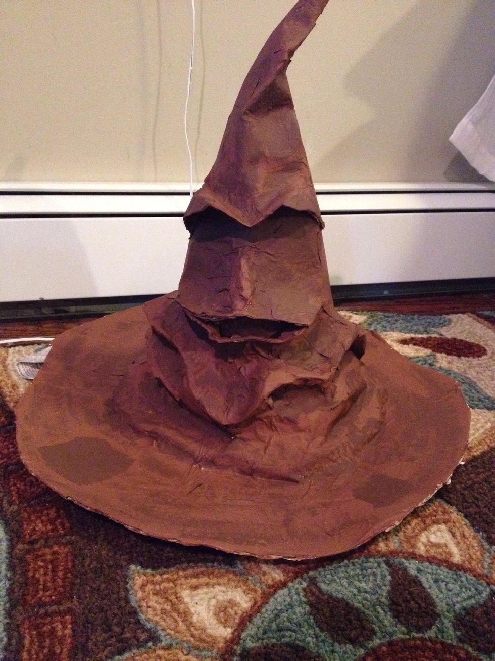 Use strips of newspaper, and a mixture of flour and water to paper mâché your hat. Make sure hat is completely covered . Allow to dry for 24 hours