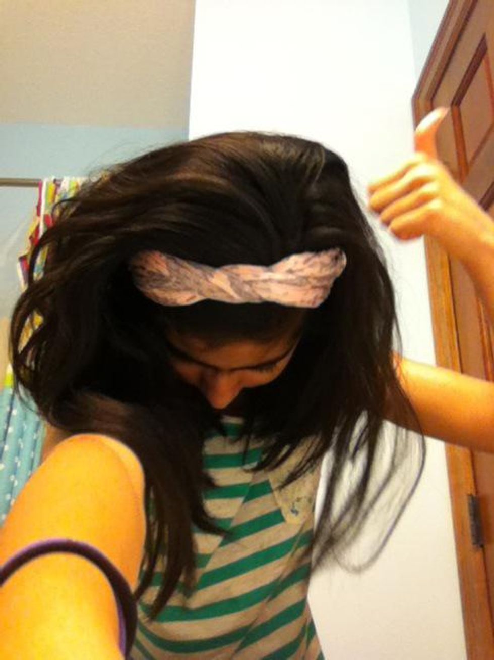 Put it on ur head and tie it
