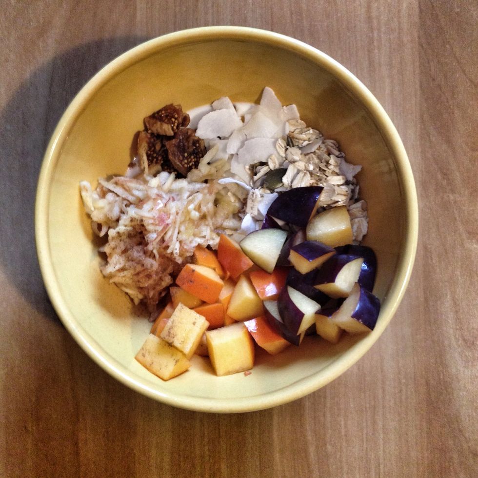 Mix altogether and add spices like cinnamon.