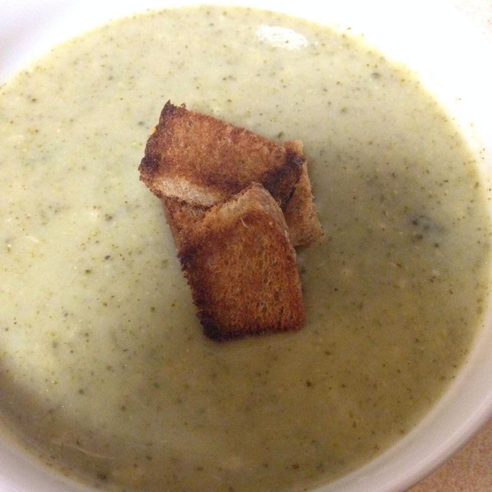 Enjoy with fresh croutons by chopping up some brown bread, drizzle olive oil and put it in the broiler for a min on each side.