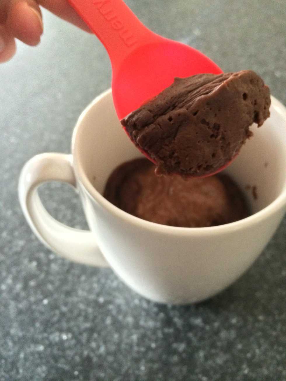 After it's mixed, pour into a mug and microwave for about 40-60 seconds, depending on how cooked you like your cake. I like mine when it's still a little runny so it tastes like a lava cake :)