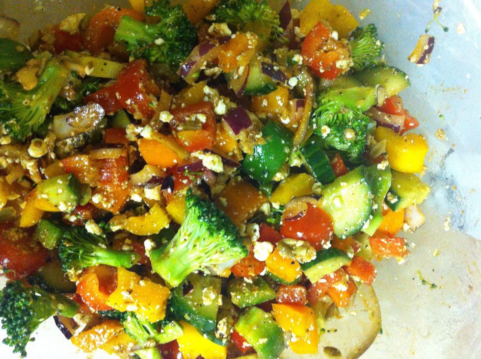 Should look like this. The olive oil, lemon, garlic and spices will act as your salad dressing.