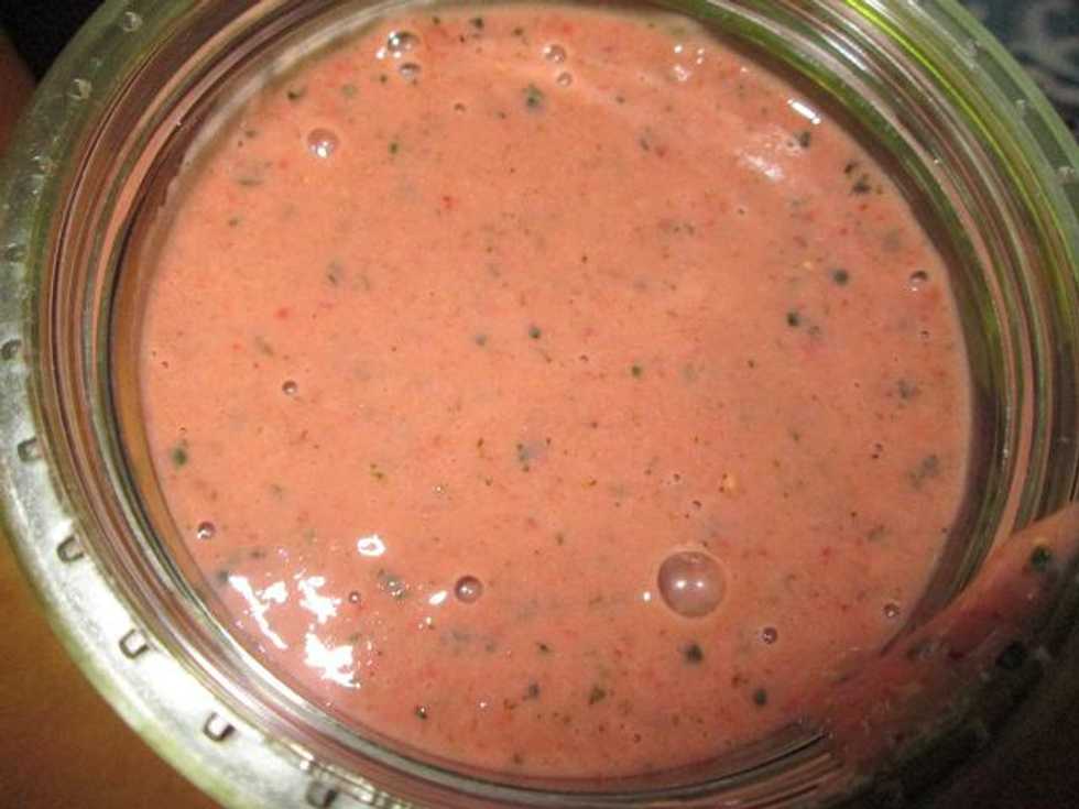 Now, add some frozen fruit. My personal favorites are strawberries, raspberries and mangoes!