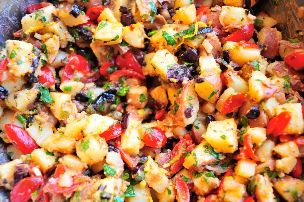 I'm not the biggest fan of mayo-based potato salads. So I came up with this version made with olive oil instead, and I'm so glad I did. This recipe is simple to make but complex on flavor. Enjoy...