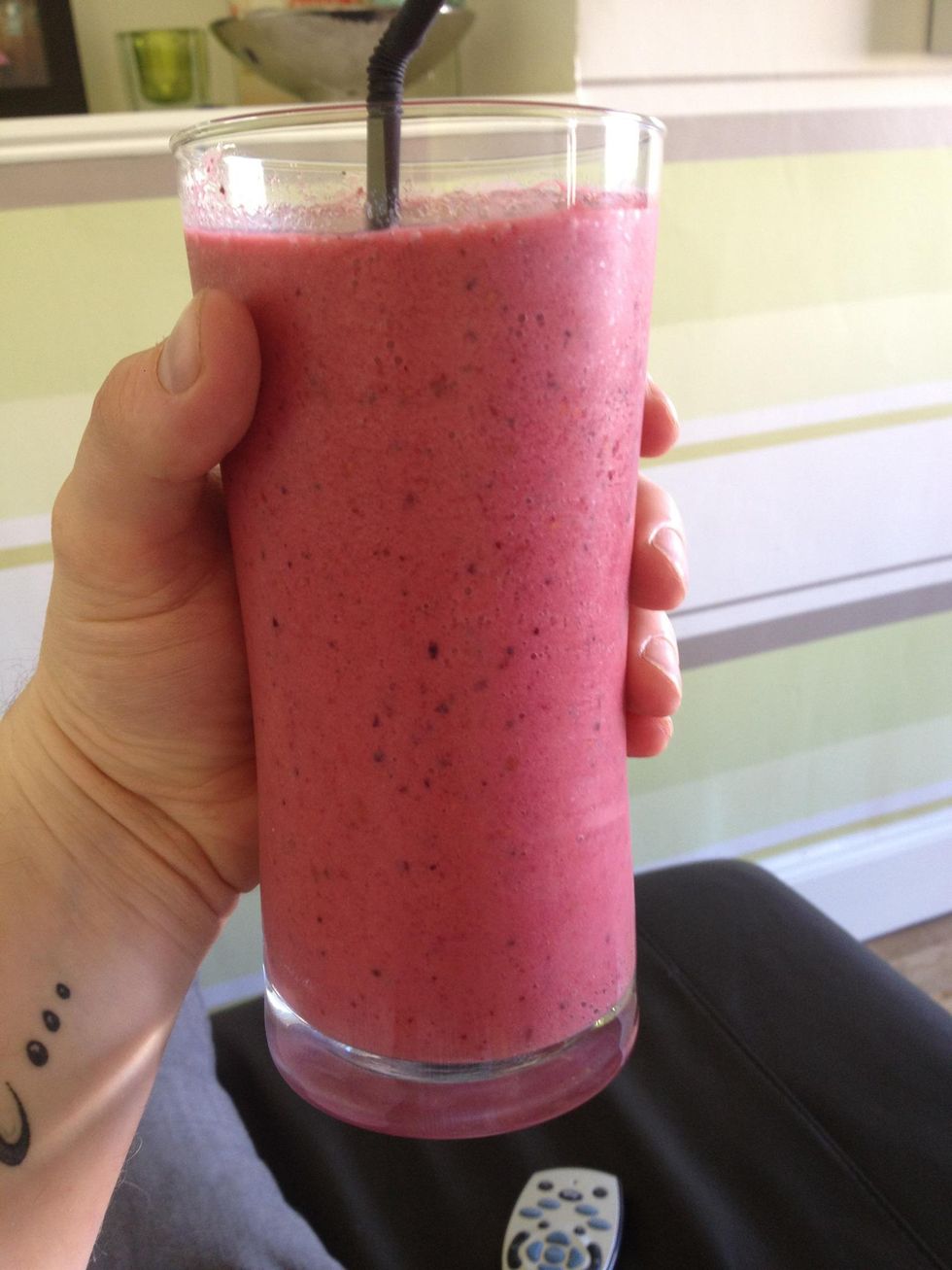 It might froth up a little but that's ok, after its nice and smooth add about 8 or 9 blackberries :0) blend it baby!