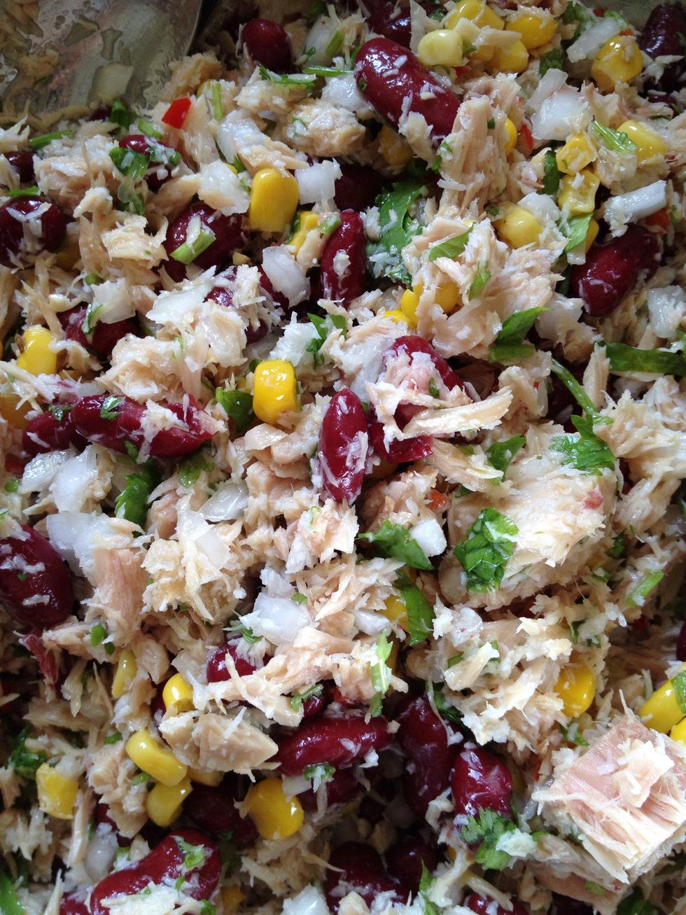 This is my own tuna salad recipe that's very healthy and honestly you can put nearly whatever you want into the salad.