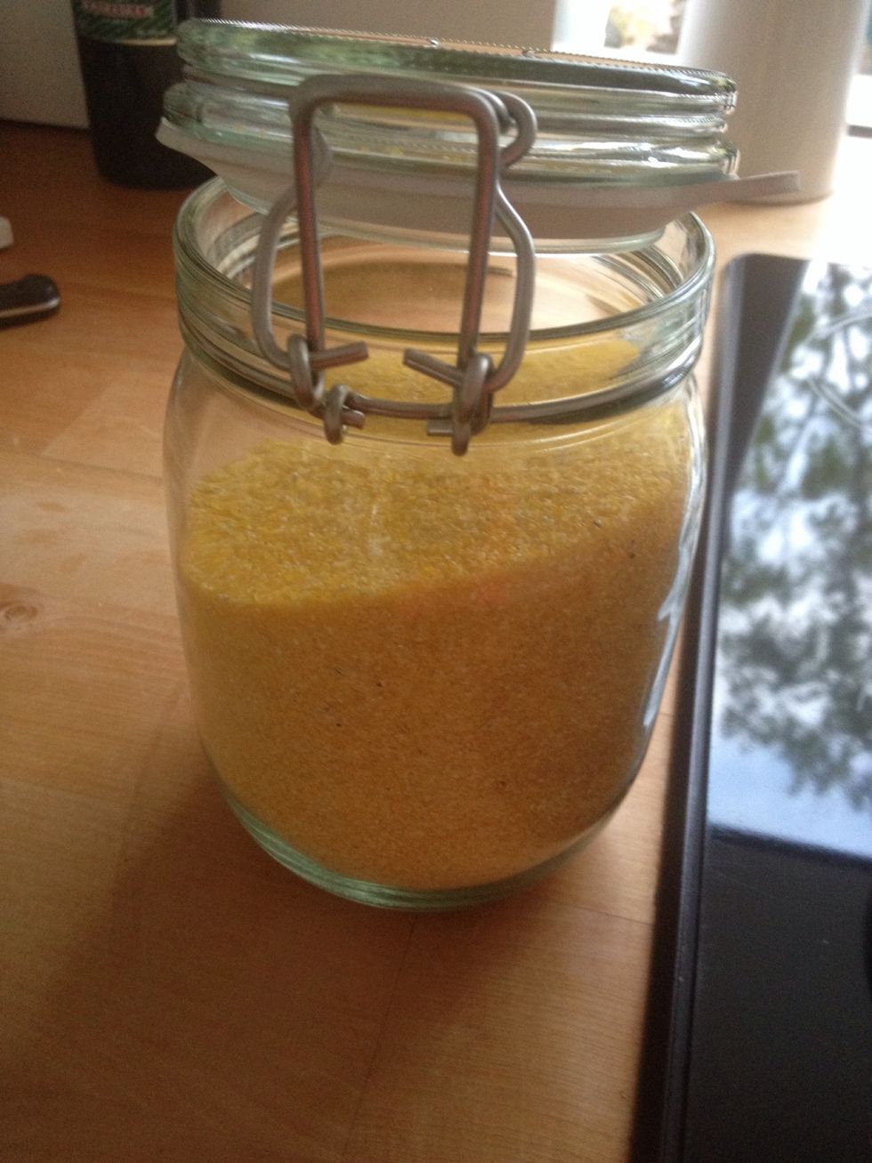 When the milk is warm you have to put 2 tsp. of semolina ( I used corn semolina ).