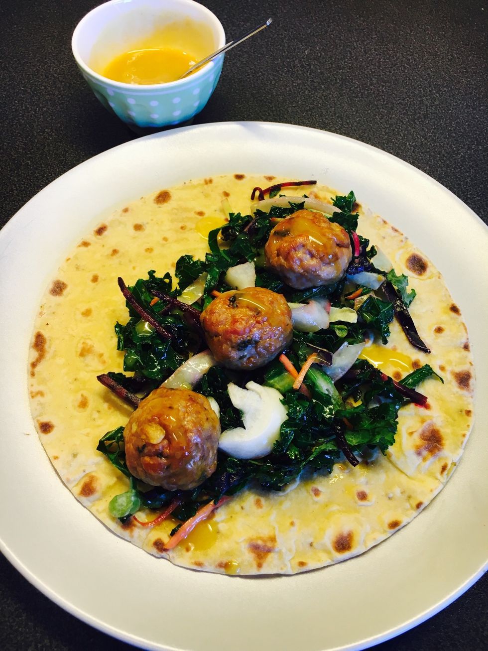Ingredients: turkey/chicken mince, corn wraps, oregano (fresh), chili and tomato pesto/chili paste , kale mix/other vegetable mix you like , rapeseed oil