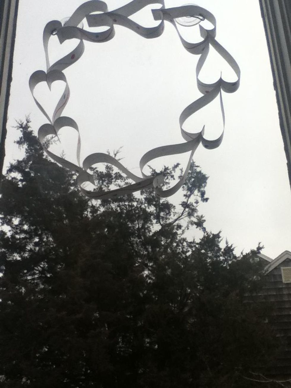 Staple two nor strips of paper to the bottom of the heart. Again if you have a design have it face inwards