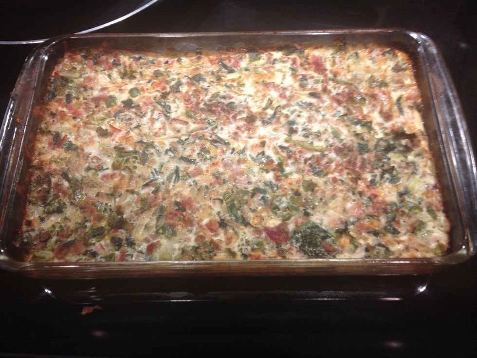 These are the casseroles done after an hour- I cut a piece from the smaller pan.