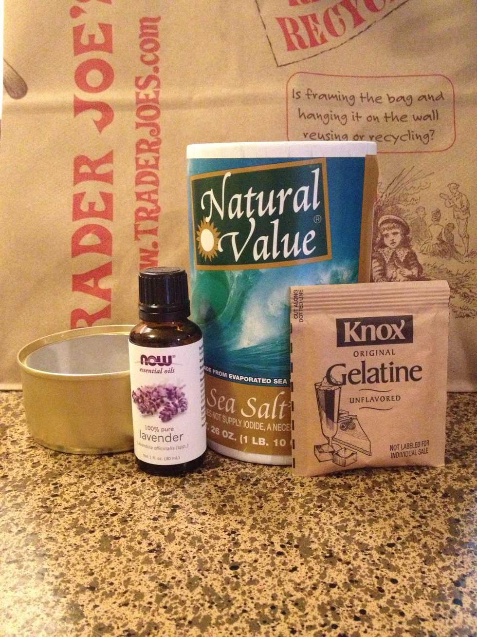Combine the salt solution with the gelatin solution & give it a quick stir. Pour into your container & mix again to distribute the oil through the mixture.