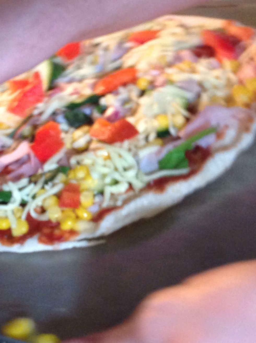 Then put some capsicum on top. Then put your pizza into the oven for about 15 minutes