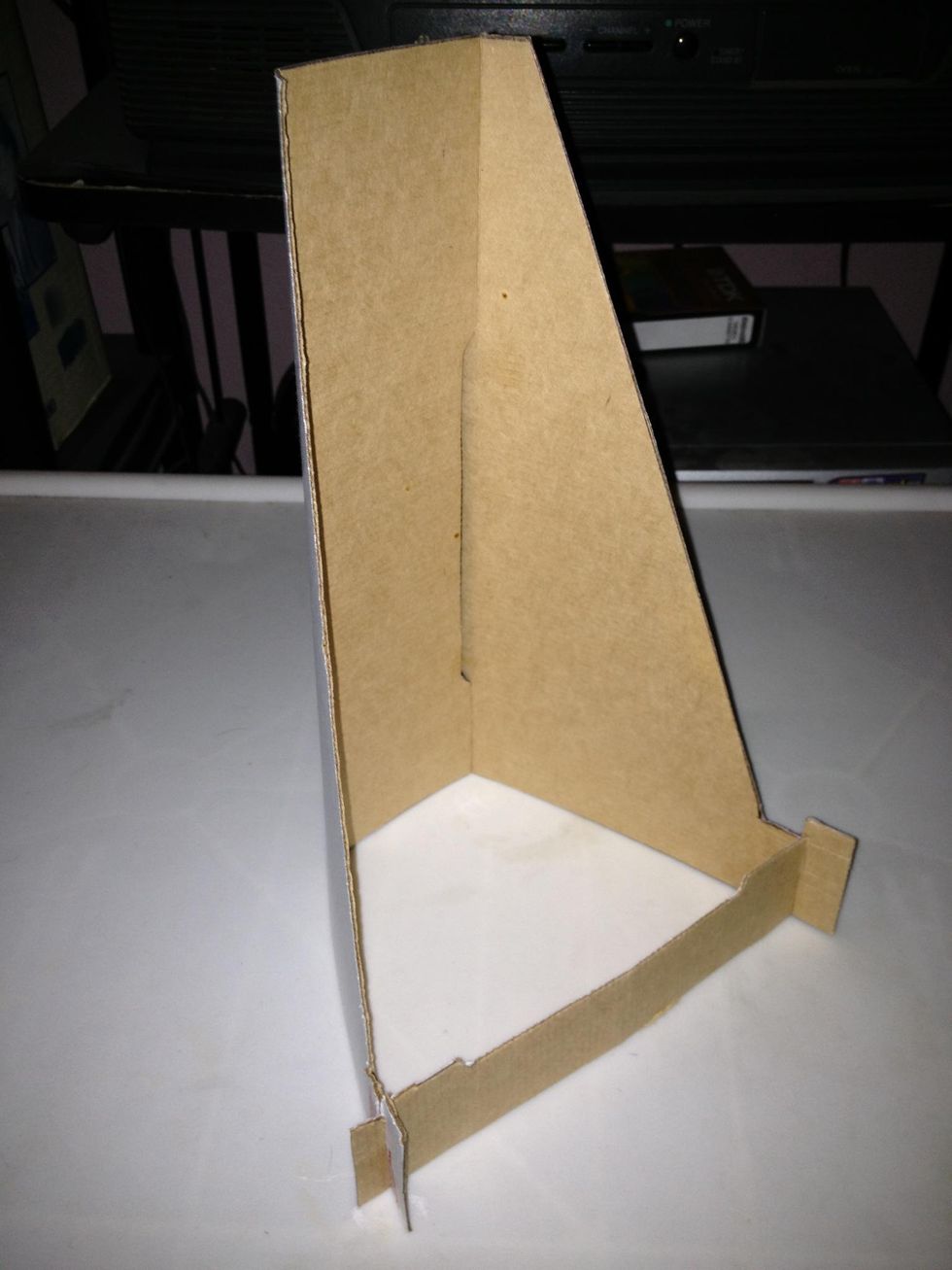 The supporting part, is a strip of cardboard, with two small cuts in the top left and right