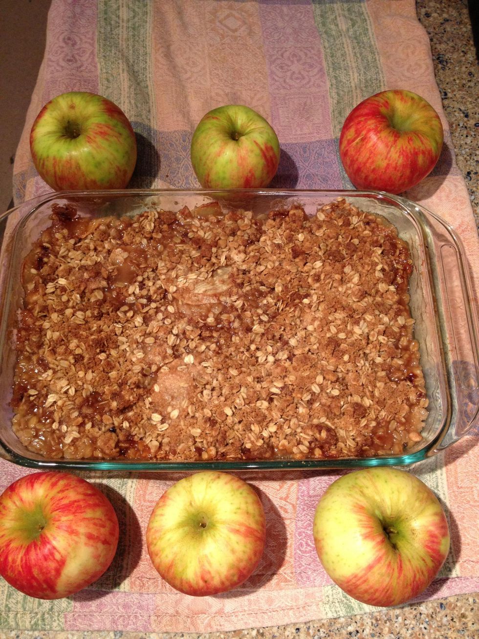 Now put it in the preheated 350 oven for 45 minutes. After the 45 minutes go by, test the middle for both apple softness and how hot it is. Mine took about an hour to be readyβΊ
