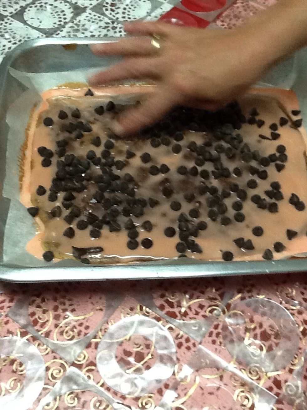 And then you have to pour the cocoa mix into the pan with the orange zest and juice.