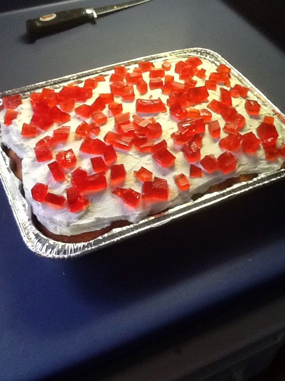 Add jello on top of your cake and voila! You have jello cake. Enjoy:)