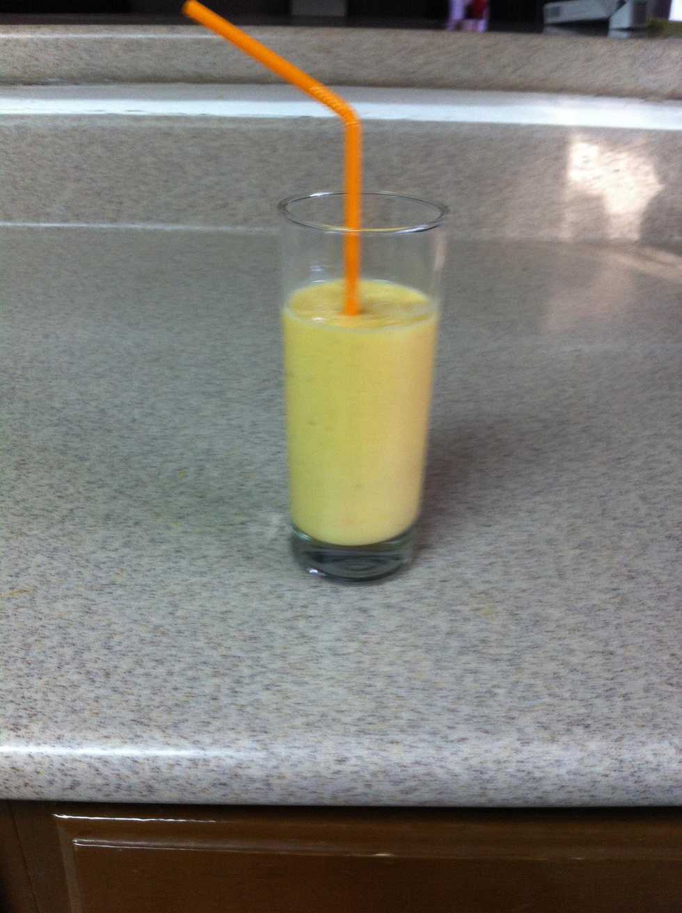 .........Put the fruit inside the blenderAdd milkLike soBlend!I decided to add banana! It's totally optinal!Mix again!Voila!! Here you goHope you enjoyed! Let me know in the comments if it worked out for you! Bye!!!