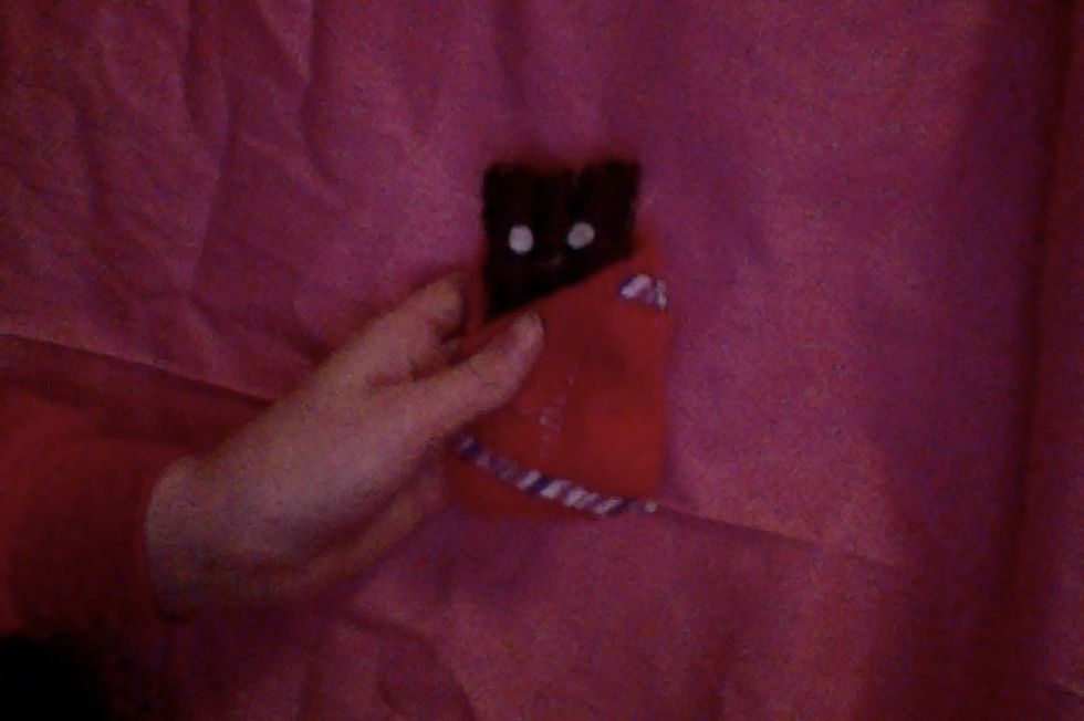 Sew your two brown pieces together,sew on a face, and add stuffing.