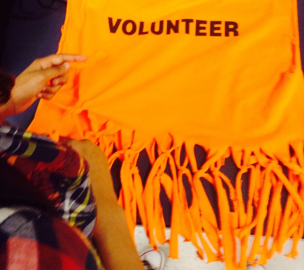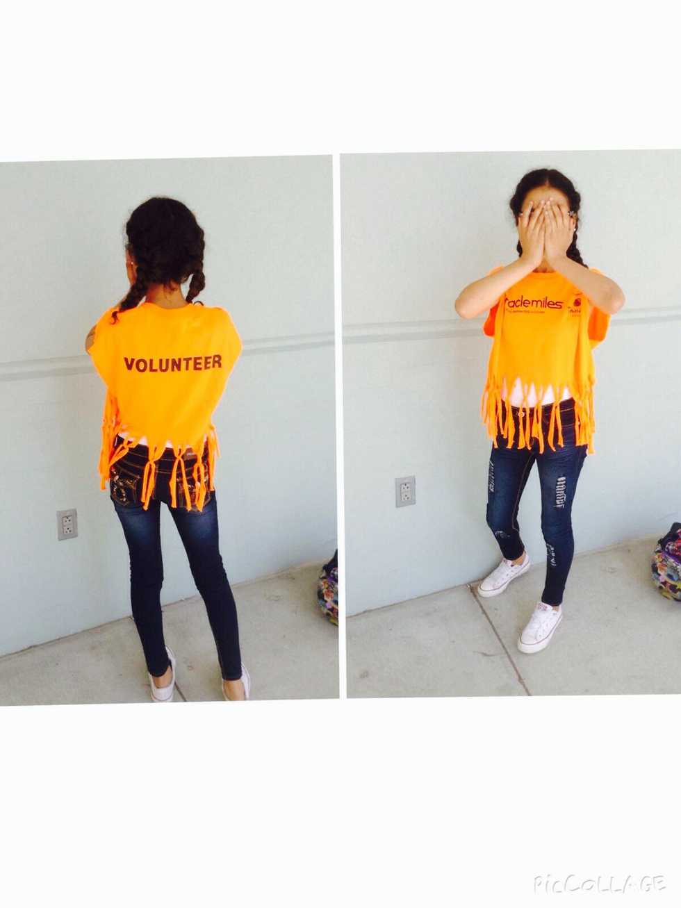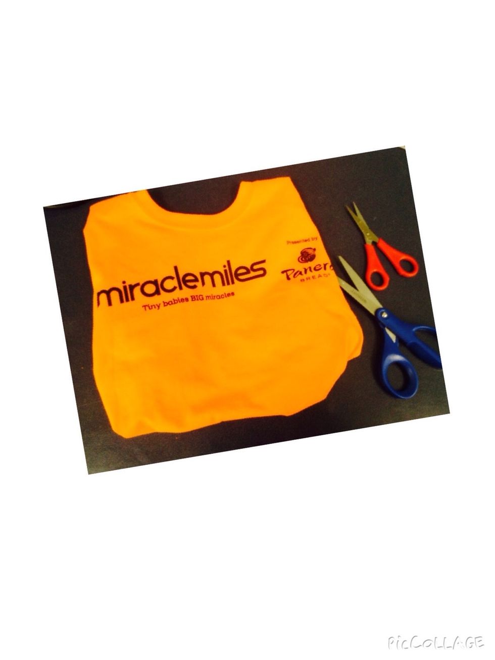 Cut the sleeves off and the rim at the bottom o the shirt.