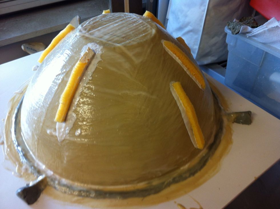 After several coats, incorporate sponges to key the latex into the mother mold.