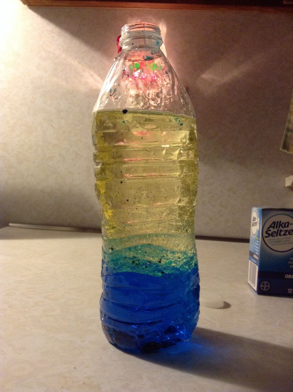 Lastly, drop in an alkaseltzer tablet and watch your new lava lamp bubble.