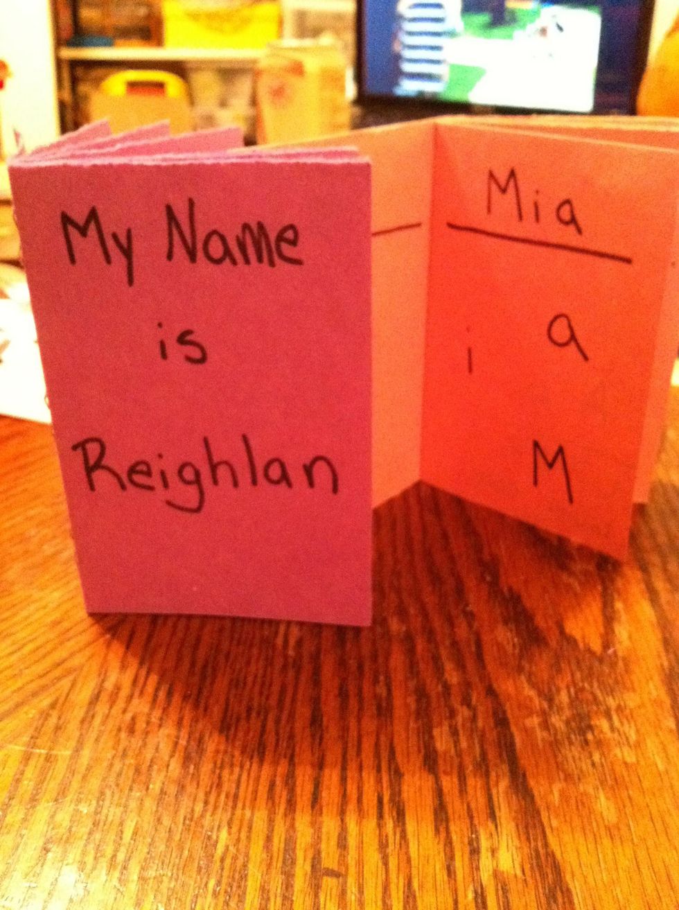 Making a simple book to help your child learn to spell their name. Can also be used for phone numbers, addresses, etc.