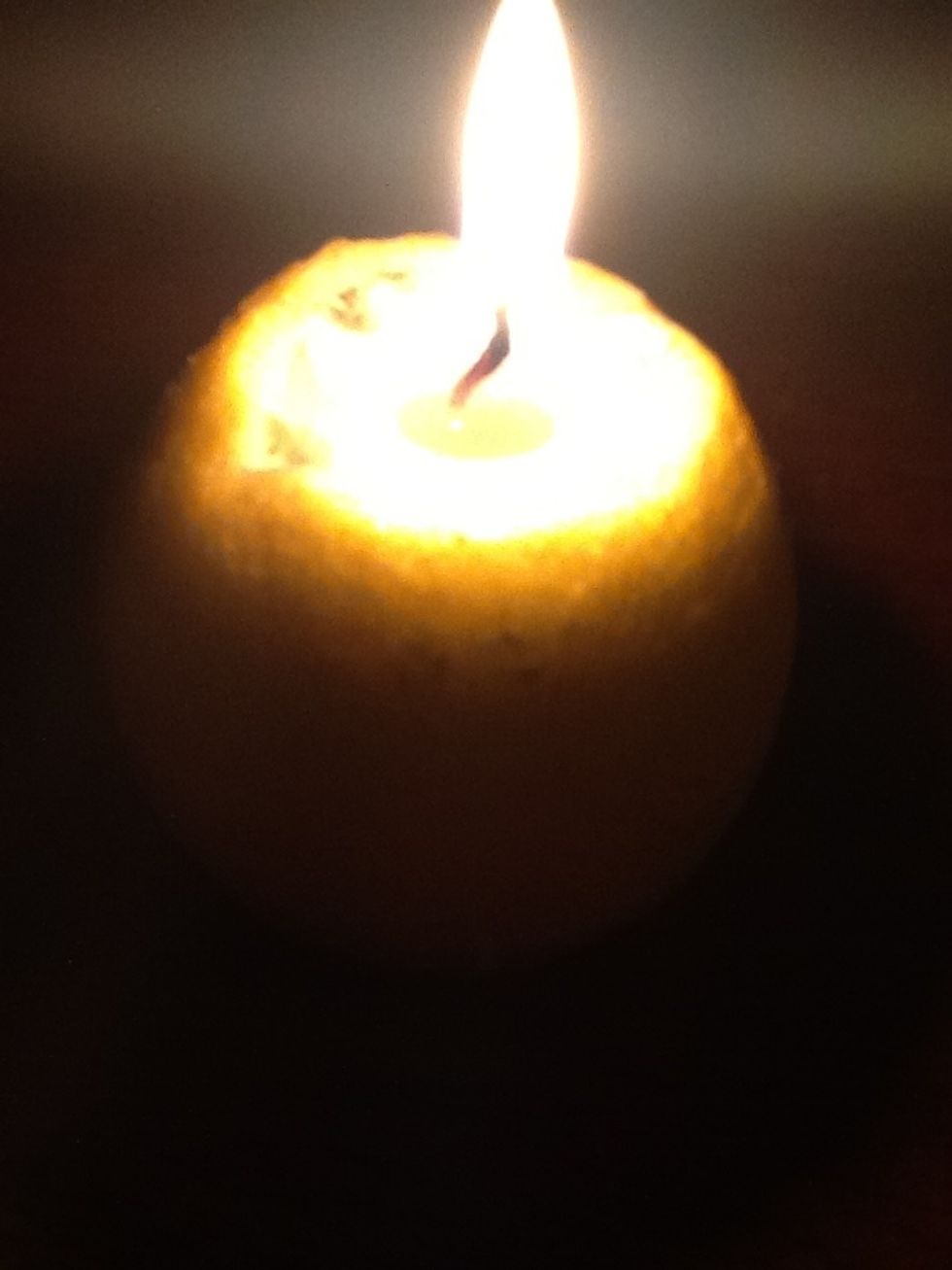 Fill up the lemon with wax and make sure that you put in the candle wick in the middle of the wax before it has dried that way the wick will get stuck in the wax.
