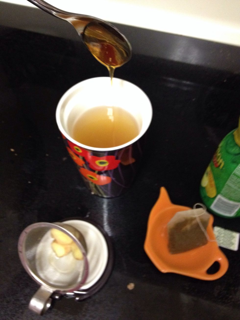 Add your lemon and honey to taste. I use about a tsp of each. Curl up and enjoy :)