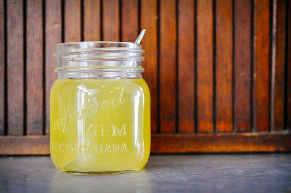 Strain the lemon juice to remove the pulp and seeds, and add the juice to the jar. Stir to combine.