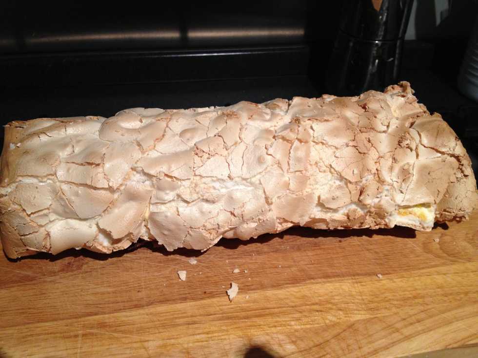 Fold over one end of the meringue into itself & then use the parchment to roll up the meringue.