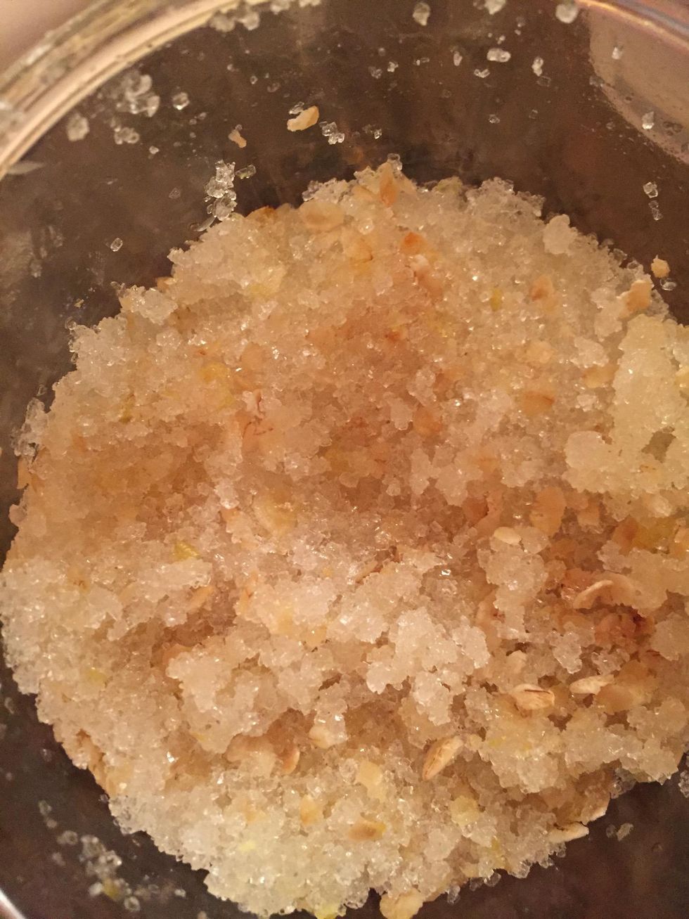 Here comes the fun part! Take some of the sugar scrub, and rub onto your hands/legs for about 2 mins for each.