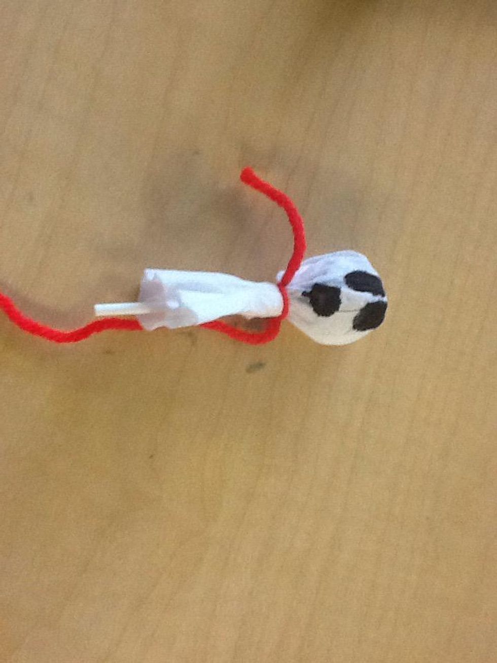 Cut ribbon to 4inchesWrap tissue around the loolpopTie the ribbon around the lollipopDecorate eyes using a marker
